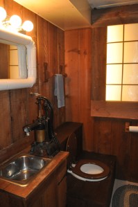 This is the downstairs bathroom in our new house, and, yes, that is a cold-water-only pump for the sink and a toilet disguised as an outhouse bench. And, yes, we will move right at the end of soccer season and the school year. More adventure awaits!