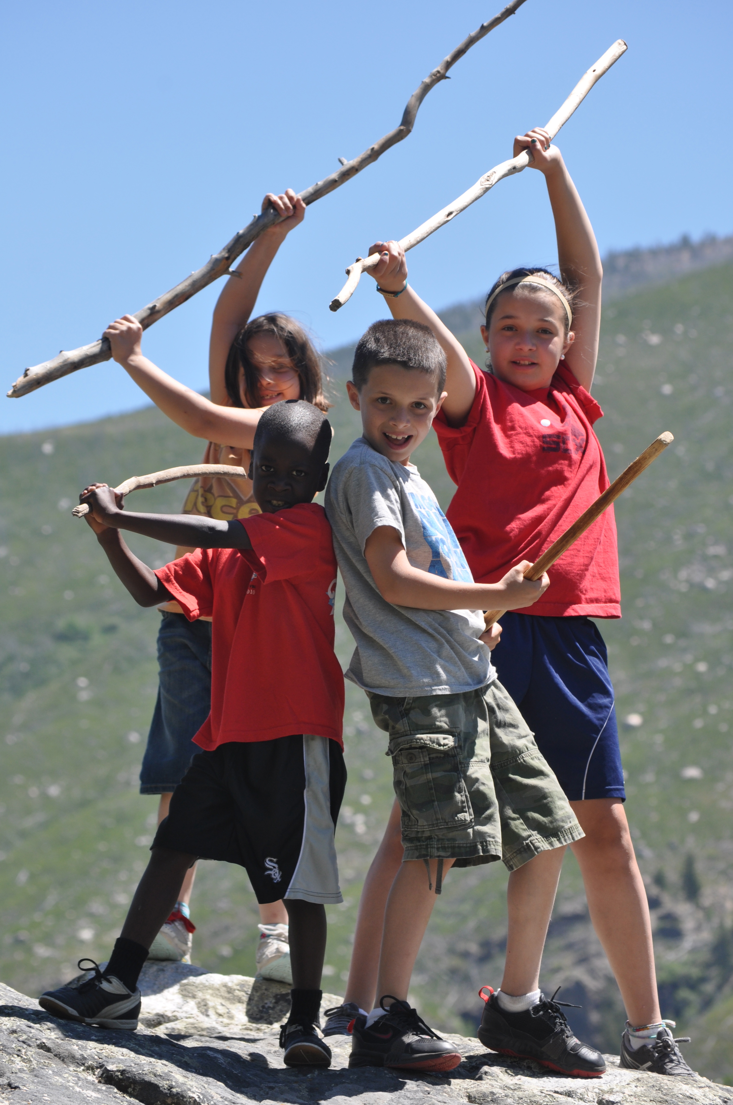 The four Underwood warriors brandishing their walking sticks before a hike in Custer National Park in Montana.