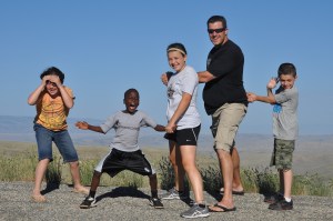 Three more days, and I will make my last trip home from SEI (Summer English Institute: an English-language immersion camp for international students). Though it has been a wonderful month of teaching and ministry, I am so ready to be full-time, 7 days a week, with my family again. This is a pic I took of the crew on an incredibly windy day during our vacation in Montana.