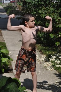 I think he took this picture himself using my computer. All I know is that I opened my computer the other day to find this picture as my background–compliments of his older sister, I’m sure! Love it!