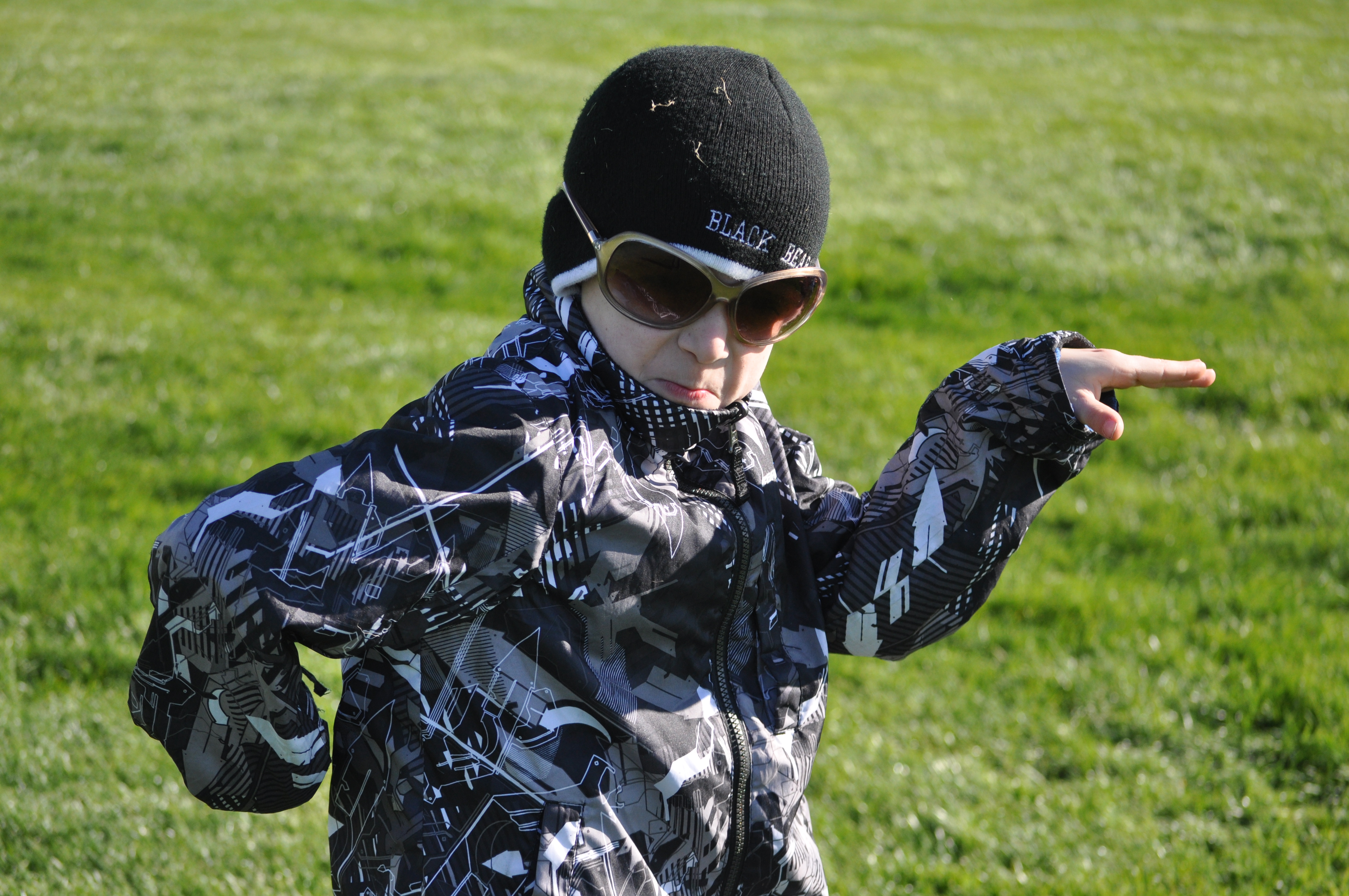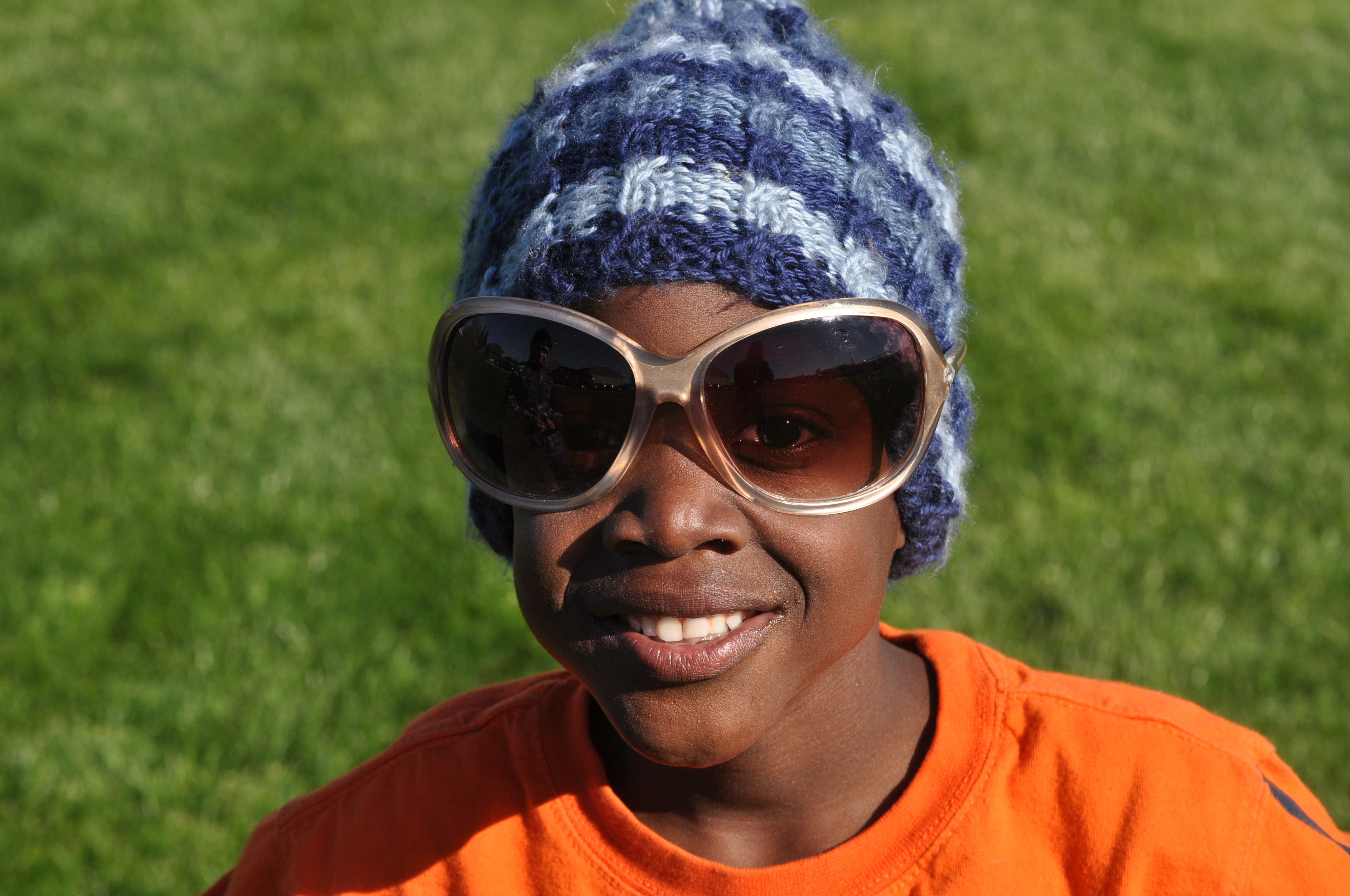 Jake, being silly and wearing my sunglasses at a soccer game (where much of our afternoon time is spent right now).