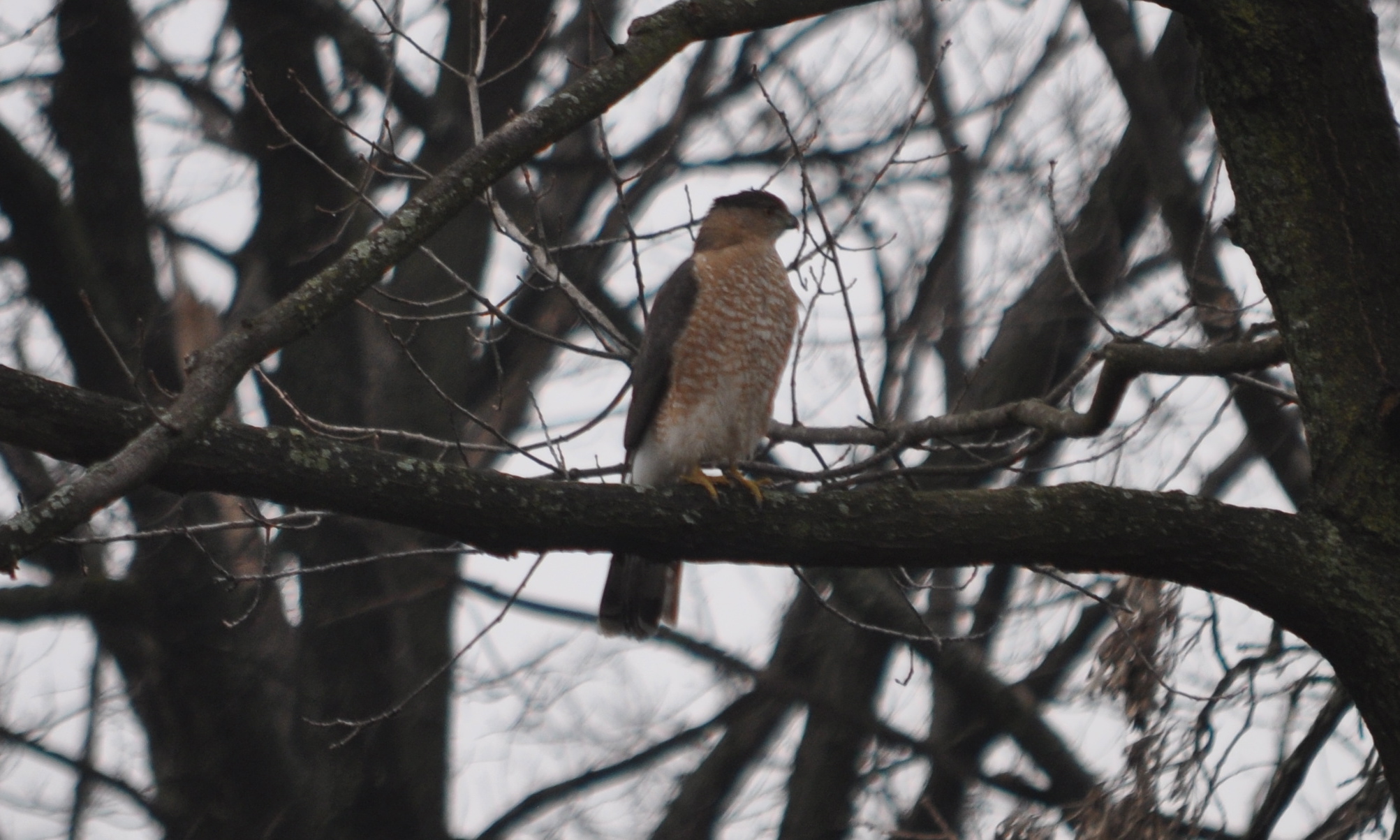 This bird was hanging out in a tree in our backyard a week or so ago. Hawk? Falcon? Anybody know? Whatever it was, it was big and fun to watch.