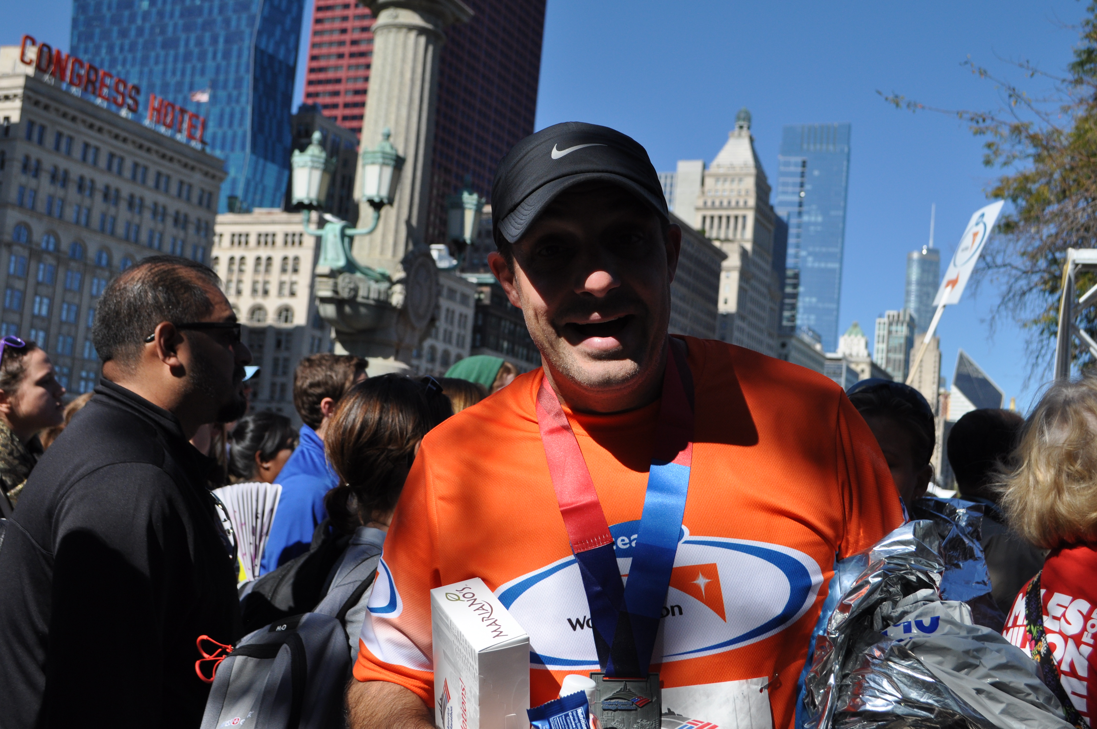 My husband, Dave, along with 45,000 others, ran the Chicago Marathon Sunday. He finished somewhere in the middle of the pack, well behind the speedy wheelchair racers and the first-placing Kenyan runner—who broke the Chicago Marathon record and nearly broke the world one—and well ahead of those persevering souls who finished after marathon officials took down the barricades along the roads and picked up the timing mats at the finish line. (To read about the final finisher, Maickel Melamed, who took 17 hours to complete the course, follow this link: http://www.chicagotribune.com/news/local/ct-met-final-marathon-finish-20131015,0,3488441.story.)